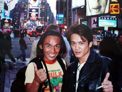 光GENJIの諸星さんと、ニューヨークのタイムズスクエアー前で